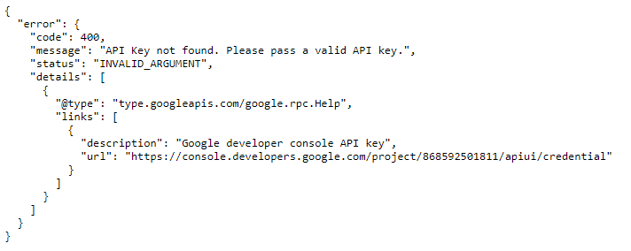 "message": "API Key not found. Please pass a valid API key."